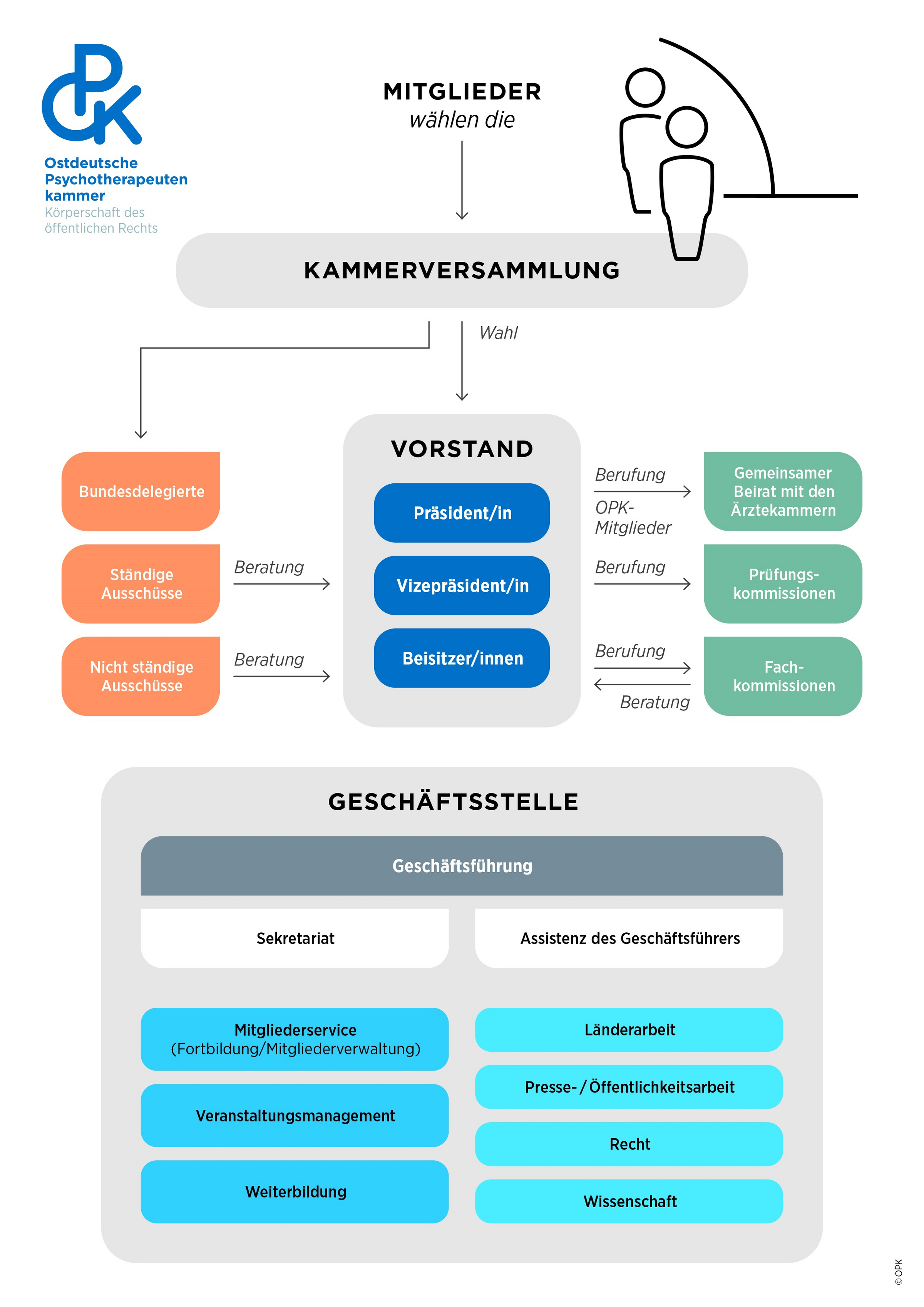Die OPK wurde 2007 gegründet. Gegenwärtig haben wir zirka 7.300 Mitglieder. Als Körperschaft des öffentlichen Rechts übernimmt die OPK Aufgaben in der Selbstverwaltung, die sonst staatlich übernommen würden.